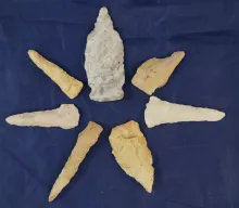 Set of 8 Thumb Scrapers and Arrowheads found in North Dakota, largest is 1 7/16". |