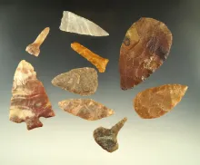 Group of assorted Flint artifacts found in the Western U. S. Largest is 2 5/8". |