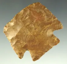 2 3/8" Archaic Cornernotch Hafted Scraper with nice deep notches found in Hardin County KY. |