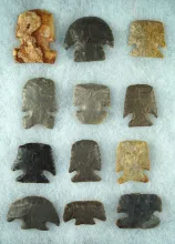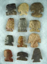 Nice set of 12 Midwestern assorted Hafted Scrapers in excellent condition, largest is 1 9/16". |