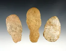 Set of 3 relics including an Adena Blade, Hafted Scraper and a Quartz Tool. The largest is 3 5/16". |