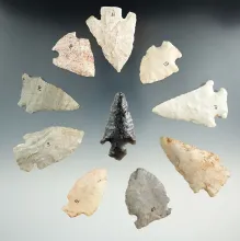 Group of 10 assorted Flint artifacts from various locations, largest is 2 3/8". |