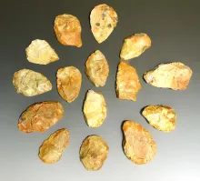 19 Blanks, largest is 4 1/4" from the Gray LaDassor Cache. Made from heat treated Crescent Quarry Fl