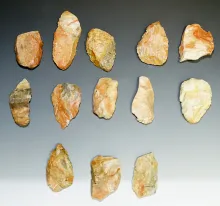13 Blanks, largest is 5" from the Gray LaDassor Cache. Made from heat treated Crescent Quarry Flint.