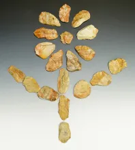 21 Blanks, largest is 3 1/8" from the Gray LaDassor Cache. Made from heat treated Crescent Quarry Fl