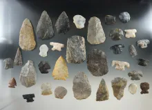 Group of 33 Wayne Co., Ohio Flint artifacts including Flint pieces, points, blades and scrapers. |