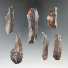 Set of six Nethers Flint Bladelets found in Ohio. Largest is 2 1/4". |