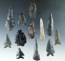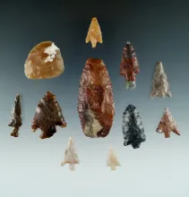Group of 12 assorted flaked artifacts, largest is 3 1/8" found in Oregon. |