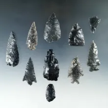 Group of 10 assorted obsidian artifacts found on the surface - Lake Co., Oregon. |
