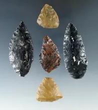 Set of five flaked Knives and scrapers, largest is 2 1/4" recovered from caves along the Cave Creek |