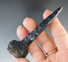 3 3/4" Finely made "Paddle" Drill made from dark Coshocton Flint. Delaware Co., Ohio. |