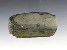 4 1/16" Gorget - Banded Slate with worm tracks. Found in Portage Co., Ohio. Ex. Robert Ward. |