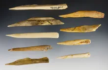 Set of 9 Bone Awls found in Taylor Co., Kentucky. Ex. Converse. The largest is 4 3/8". |