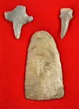 Set of three artifacts found together in Mason Co., Kentucky including a nicely styled Flint Celt. |