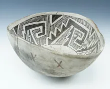 Uniquely shaped 8 1/4" Wide by 4 1/2" Tall Anasazi Bowl with excellent geometric design. | NEW MEXICO | 350.00 |
