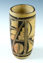 6 1/4" tall Taos Vase with some chipping to rim area and a couple pressure cracks. |