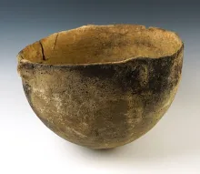Large 9" wide by 6" tall Shell Tempered Clay Mississippian Pottery Vessel. |