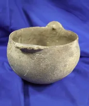 8 1/2" wide Mississippian effigy bowl found in Arkansas with restored cracks. |