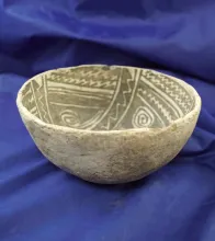 4 3/4" wide Caddo engraved Bowl found in Clark Co., Arkansas - small amount of restoration. |