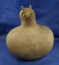 6" by 6 1/2" Red and Buff Bottle found in Mississippi County Arkansas at the Crosskno site. Pictured
