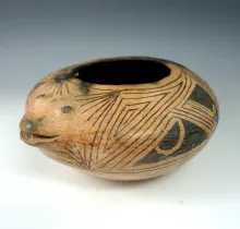 Well styled and nicely painted 7 1/4" Wide Effigy Jar. |