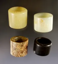 Set of 4 vintage Chinese Jade Rings. Recovered in Southeast Asia. Exact age unknown. 1 5/16". |