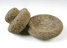 3 11/16" diameter Stone Medicine Bowl with matching Knob-Top Grinder. New Mexico area. |