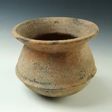 6 3/4" wide x 5 1/4" tall nicely decorated and engraved Ancient Ban Chiang Pottery Vessel, Thailand.