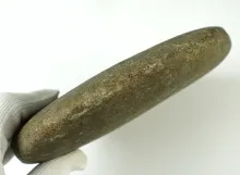 7 7/8" Stone worked into a circular shape with a nutting divot in the middle. Found in Western Ohio.