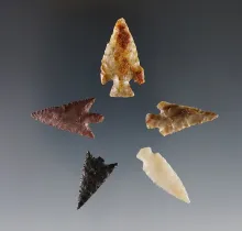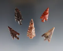 Set of 5 nicely made Columbia River Points. Ex. Frank Wilke. The largest is 1 1/4". |