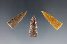 Set of 3 Triangles found close to the Columbia River. Ex. Gene Favell. The largest is 1 5/16". |