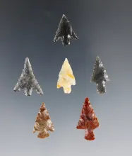 Set of 6 fine Columbia River Points. Ex. Frank Wilke. The largest is 7/8". |