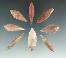 Group of Eight African Neolithic leaf points found in the northern Sahara Desert region. |
