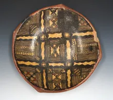 Large 18" diameter Berber pottery bowl from Morocco. Some wear and chipping to rim. 55.00