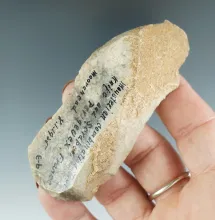 Heavily patinated and nicely styled 3 3/4" Danish Flint Celt with nice old collector tag. Denmark. |