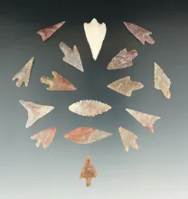 16 nicely flaked Neolithic points found in the northern Sahara region of Africa. Largest is 13/8". |