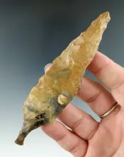 Unique and rare 3 3/4 wide Gravure Tool from the early Solutrean period found in France. |