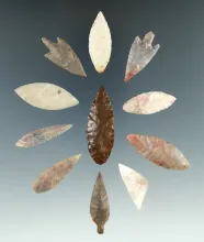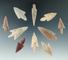 Set of 11 assorted African Neolithic arrowheads found in the northern Sahara desert region. |