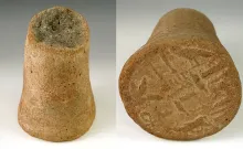 Very unique Egyptian tomb offering made from clay with nice images on bottom. |