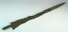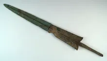 20" ancient Persian Luristan spear or sword made from bronze with a socketed base. |