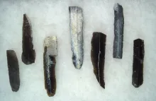 Set of 7 heavily patinated Uniface Flake Knives struck off a core.Copenhagen, Denmark. |