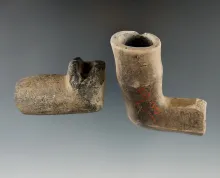 Very unique 4 3/4" Long Iroquois Clay Obtuse Angle Mammilary Pipe. Jefferson Co., New York. NEW YORK 3,750.00