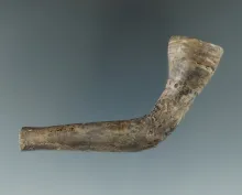 4 1/8" late woodland Obtuse Angle Pipe made from sandstone found in Cayuga Co., New York. |