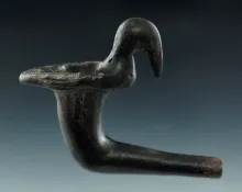 3 1/4" wide bird effigy Iroquois clay pipe with moderate restoration found in New York. |