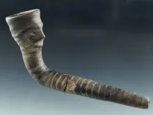 3 5/8" long Iroquois trumpet pipe with a broken and mended stem and restoration to the flared rim. |