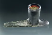 Unique! 1 9/16" long miniature bronze Reeves site trade pipe found by Alvin Wait in May 1965 OHIO 200.00