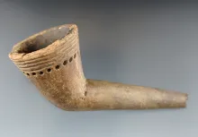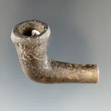 5" Long Iroquois Clay Ring Bowl Pipe that is broken and mended at the elbow. New York. |
