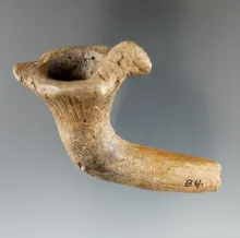 2 7/8" Iroquois clay bird effigy pipe - New York - broken and mended at the elbow. |