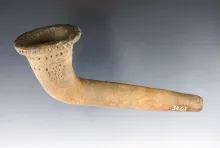 Large! 8 3/4" ring bowl Iroquois pipe. Two broken and mended areas on stem. New York. |