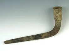 3" long Iroquois ring bowl pipe - broken & mended at the elbow. New York. Some restoration. |